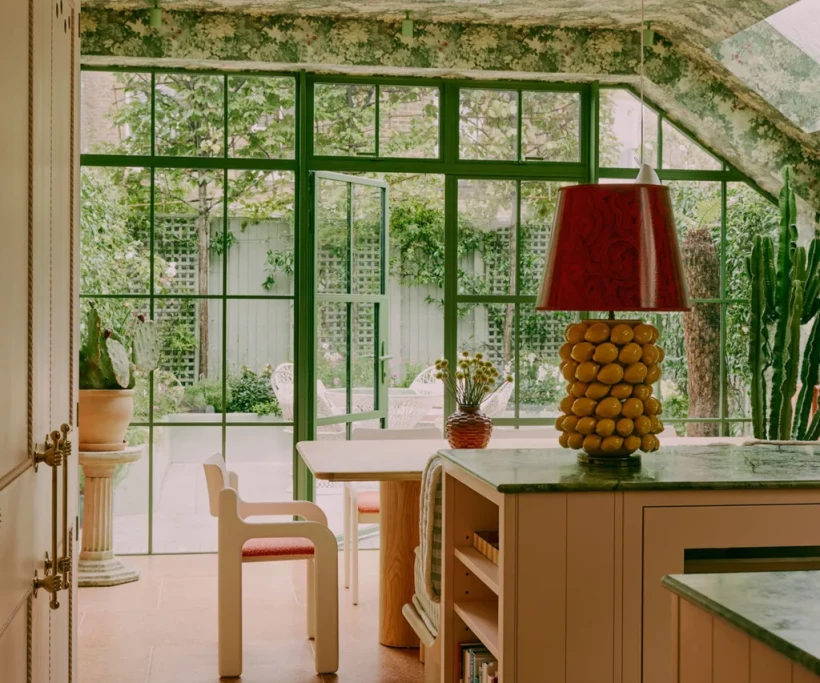 Представьте Кармен Миранду, отдыхающую среди фруктовых деревьев. Это уже половина пути к пониманию необычной любви к фруктам. Речь идёт не просто о мотивах, а о формах: подушки в виде яблок, подносы в форме груш, даже лампа с миниатюрными лимонами, которая стала настоящей звездой на кухне дизайнера интерьеров.